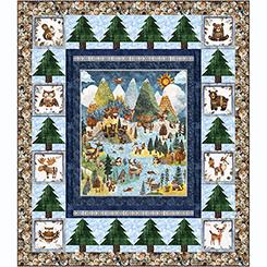 This kit is cut from the Bearsville fabric collection from QT Fabrics for 2025. The pattern: Bear Mountain was designed by Phoebemoon for this collection. There are no fabric substitutions in this kit. The project finishes about 68" X 78" when complete.