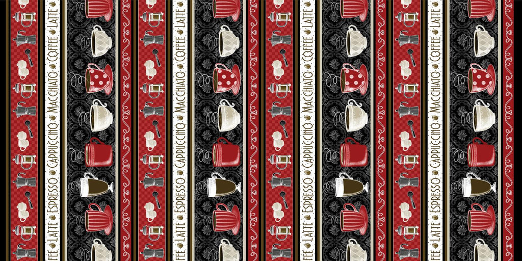Coffee is a great way to start the day… and when you add in a little sewing, it makes for a Perfect Brew!! The newest fabric collection by Andi Metz combines graphic images of all your favorite coffee drinks and motifs. The unique apron panel in durable duck cloth would make a great gift item for your favorite coffee lover. You’ll be inspired to sew all day long with this deliciously caffeinated collection!