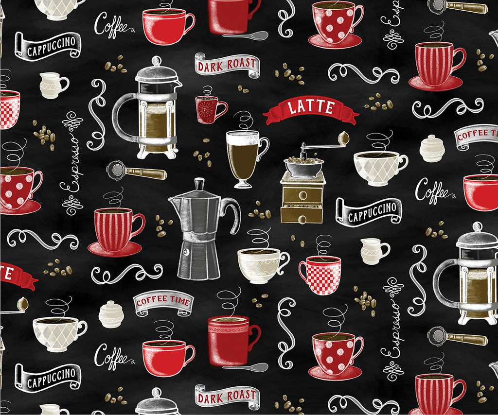 Coffee is a great way to start the day… and when you add in a little sewing, it makes for a Perfect Brew!! The newest fabric collection by Andi Metz combines graphic images of all your favorite coffee drinks and motifs. The unique apron panel in durable duck cloth would make a great gift item for your favorite coffee lover. You’ll be inspired to sew all day long with this deliciously caffeinated collection!