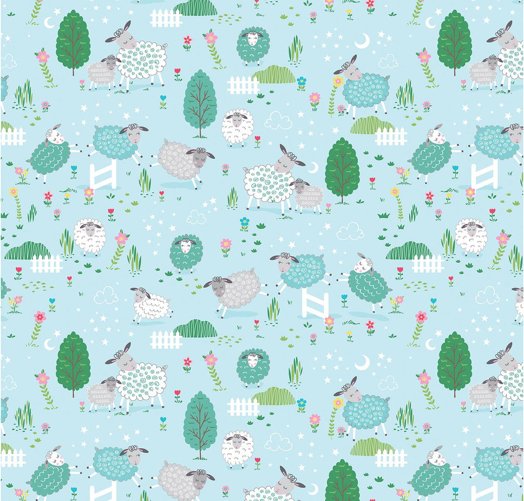How cute can one fabric collection be? These whimsical lambs frolic amongst stars and swirls in soft shades of green, blue and gray. The large focal panel is perfect for an adorable quilt - the sheep are all there to count at bedtime! Ideal for gender neutral nursery decor, baby quilts, diaper bags, and baby shower gifts - sew sweet!