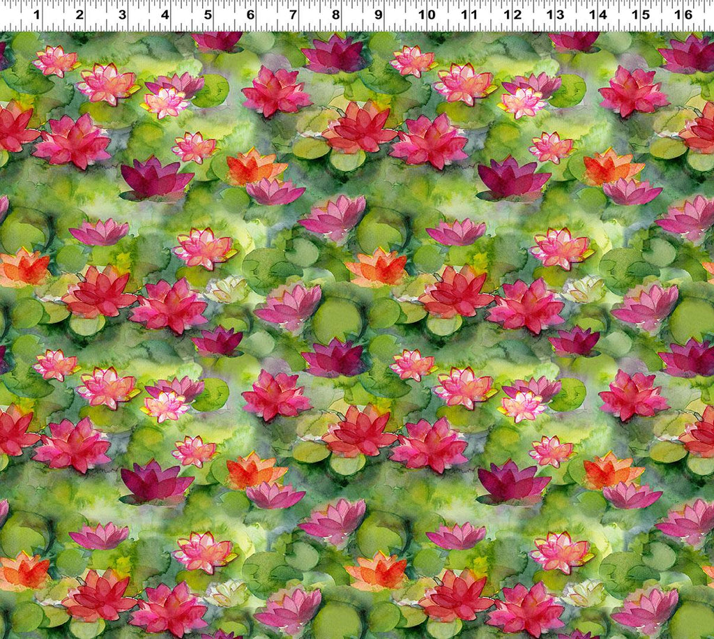 Lily Pond is a beautiful digital collection designed by Sue Zipkin with Clothworks 2025. The shades are bright and happy in blues, greens, purples and rose. The artwork is done in a wonderful watercolor paint style. You will find all sorts of flowers and even some dragonflies and koi fish from the lily pond.