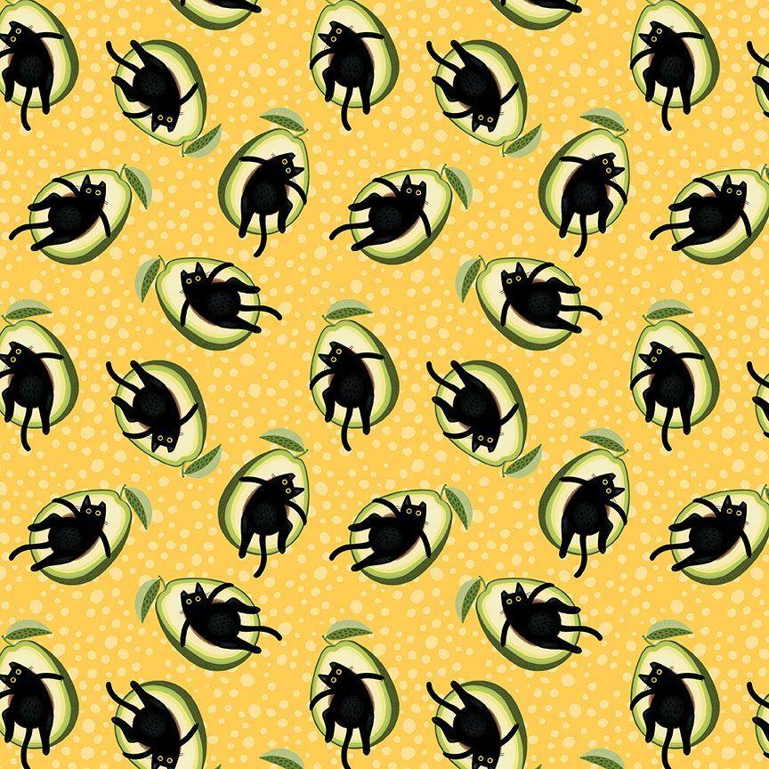 Designed by LEEZAWORKS with Dear Stella 2025. And sure, cats love to pose with fruit! This whimsical collection features cats in all sorts of poses with all manner of fruit. It's bright and funny and sure to be a hit with any cat lover.