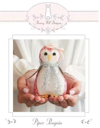 Piper Penguin, A Bunny Hill Petite pattern. She's so sweet and perfect for a Christmas tree ornament, a package decoration, a mantle display, or a gift for someone who loves penguins. 4 3/4" x 3"