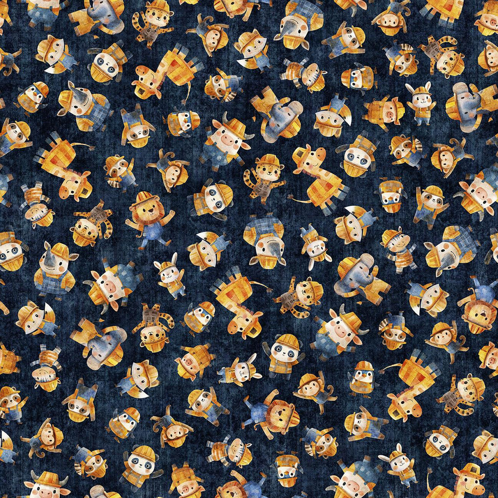 Playful animal construction workers are full of imagination and fun! Picture patches, border stripes, and adorable coordinates is all you need to design and build projects for a little one. Perfect for a themed nursery, infant/juvenile accessories, and conversational apparel. ©Morris Creative Group. Each block measures 8" square; 36" repeat.
