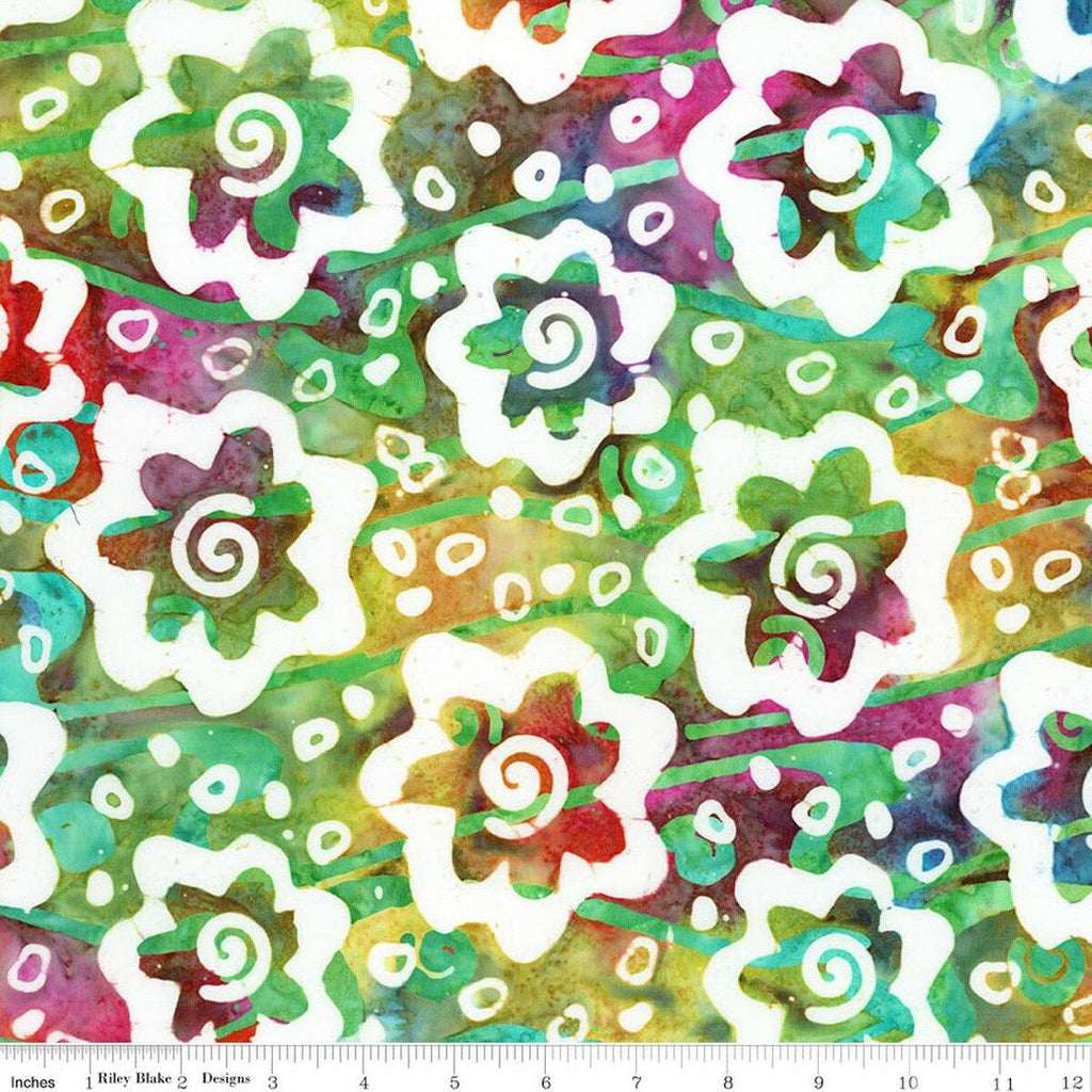The Expressions Batiks Collections by Riley Blake Designs are great for quilting, apparel and home decor. They are produced in state-of-the-art facilities with the best Tjap designers and makers, color experts, and stamp prodigies. From conception to completion, each fabric has been meticulously designed for your creative and colorful imagination. Riley Blake Designs batiks are ethically sourced and made with the highest quality fabric. Each hand-dyed print is designed and developed by cultivating relationships with true batik artisans in Indonesia. Due to the hand-crafted nature of batiks, fabric may vary from image. The Bold in Bloom collection by Fran Morgan of Fabric Café features blooms scattered throughout the collection, with bold color application and movement created by the spinning, waving geometric elements.