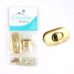 A Small Turn Lock for bags, wallets and purses. Perfect for the The Necessary Clutch Wallet pattern. (Item #EMMB-101). Easy to install. Finish: Antique Brass