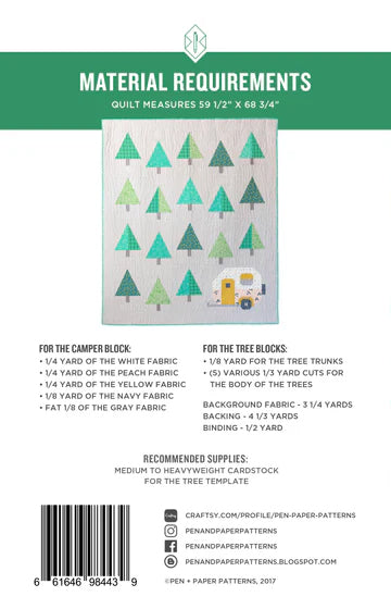 The Up North Quilt by Pen + Paper Patterns is perfect for the outdoor enthusiast OR for people who just think campers and trees are the cutest :) This entire pattern uses standard piecing and features detailed instructions, diagrams and tags to label your cuts of fabric - making it a great pattern for the ambitious beginner and up! Finished size is 59 1/2" x 68 3/4".